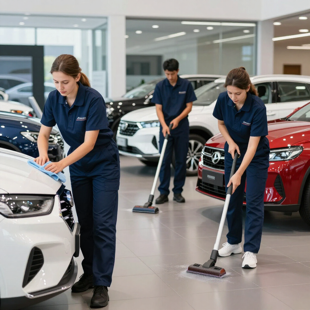 We provide a range of commercial cleaning services including routine janitorial cleaning, deep cleaning, floor maintenance, restroom sanitation, and high-touch surface disinfection, specifically tailored for automotive dealerships, office buildings, and various facilities.